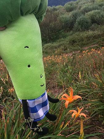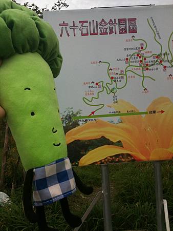 在鳳林用完餐後即刻馬不停蹄的往金針花海手刀飛車過去,深怕晚個一秒說不定又一朵什麼話都不留給我們就謝了,這樣的話對我們也太心酸了。老天待我們也不算差,一大早的陰天在我們到六十石山的時候已經放晴,而我們上山後映入眼簾所看見的是........一小片金針花!!(真的是一小片,全部採完拿去煮2人份金針排骨都嫌少的一小片)但我們豈能被這一小片金針花所擊敗,Canon三俠還是拿出專業全套配備應戰,哪怕只有一朵金針花,只要開得燦爛而耀眼就夠了反正回去再用Photoshop複製貼上滿山滿谷的金針花就算貼到天空也沒差,而我則開心牽著Brocco賞花去。雖然僅剩一小片金針花但還是很漂亮,Brocco都忍不住伸手摸。